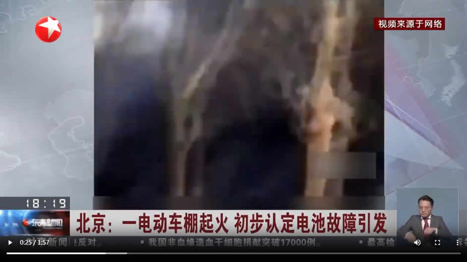 北京一電動車棚起火 初步認定電池故障